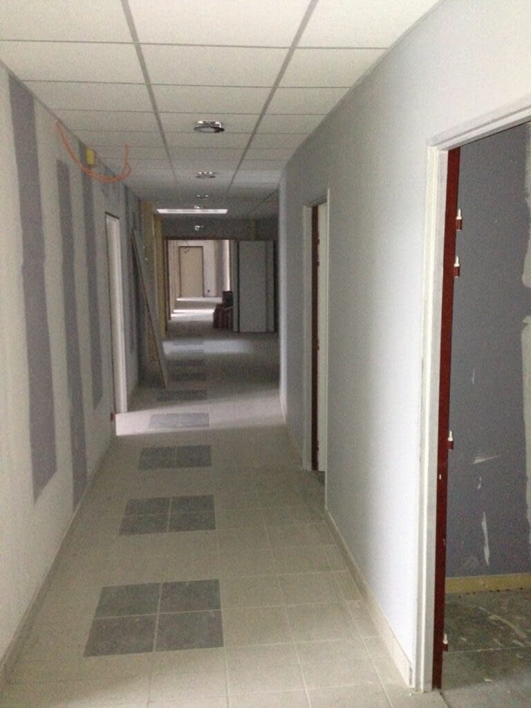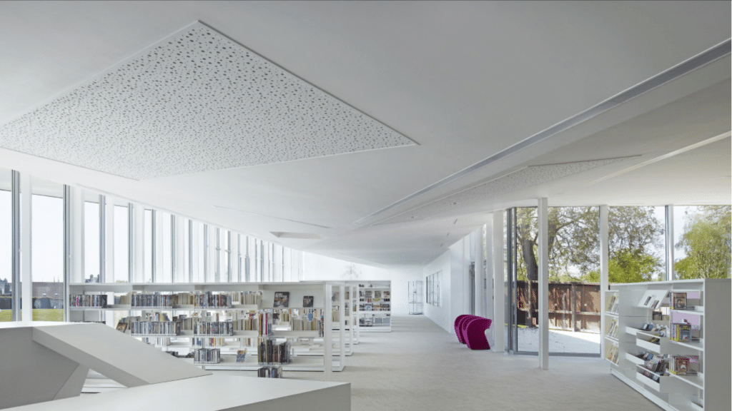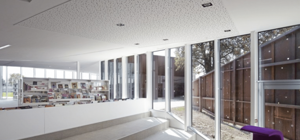 isolation et pose de cloisons acoustique lors de la rénovation de la bibliothèque de Corbie.